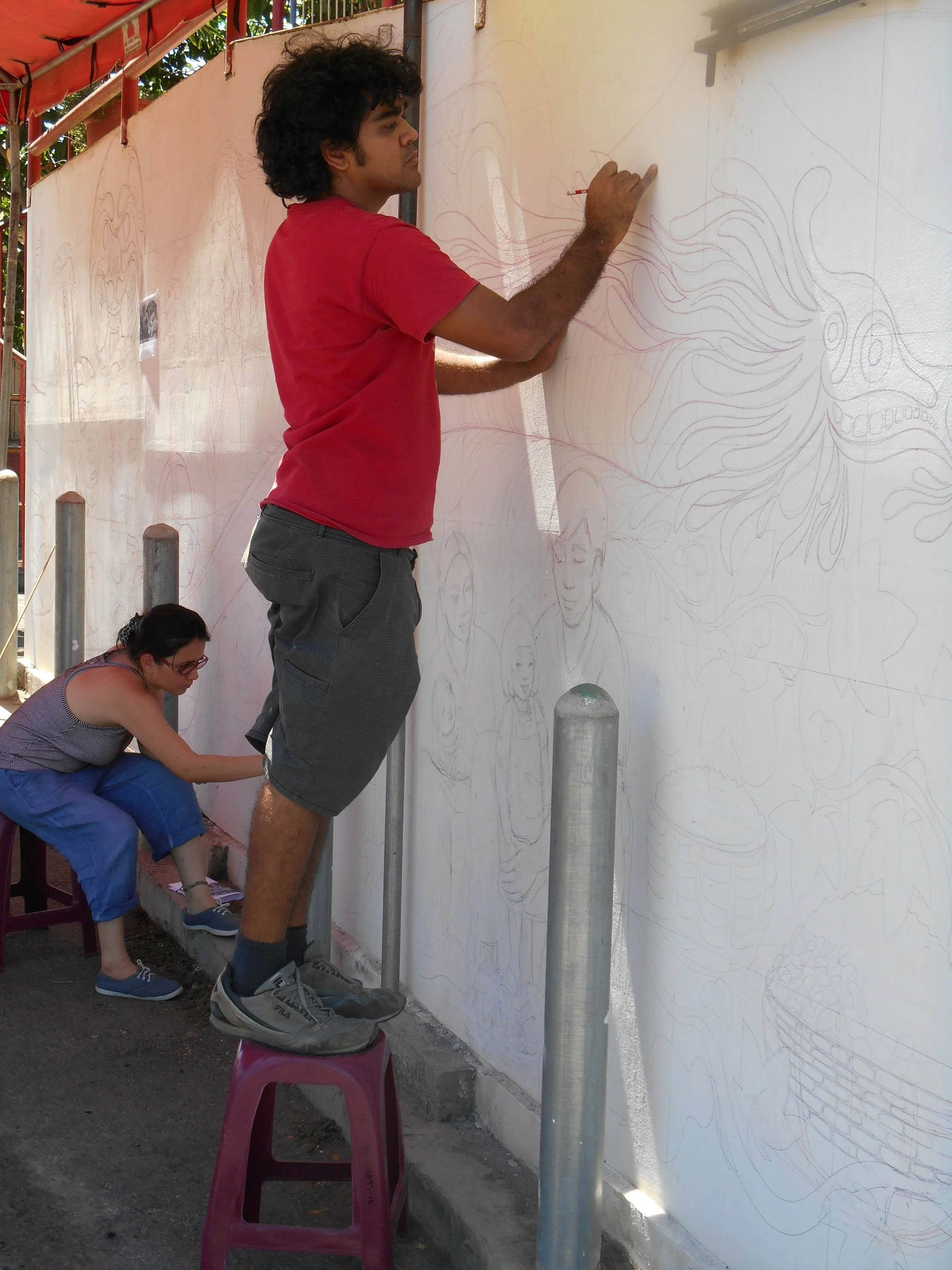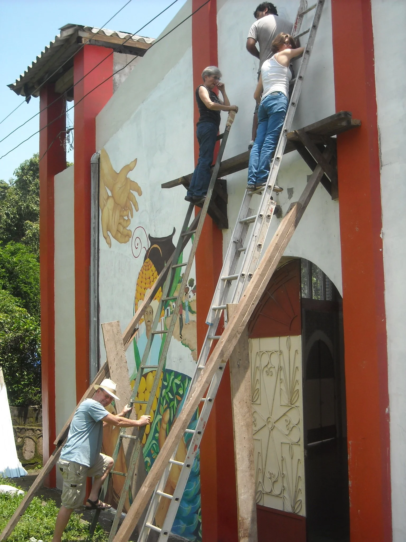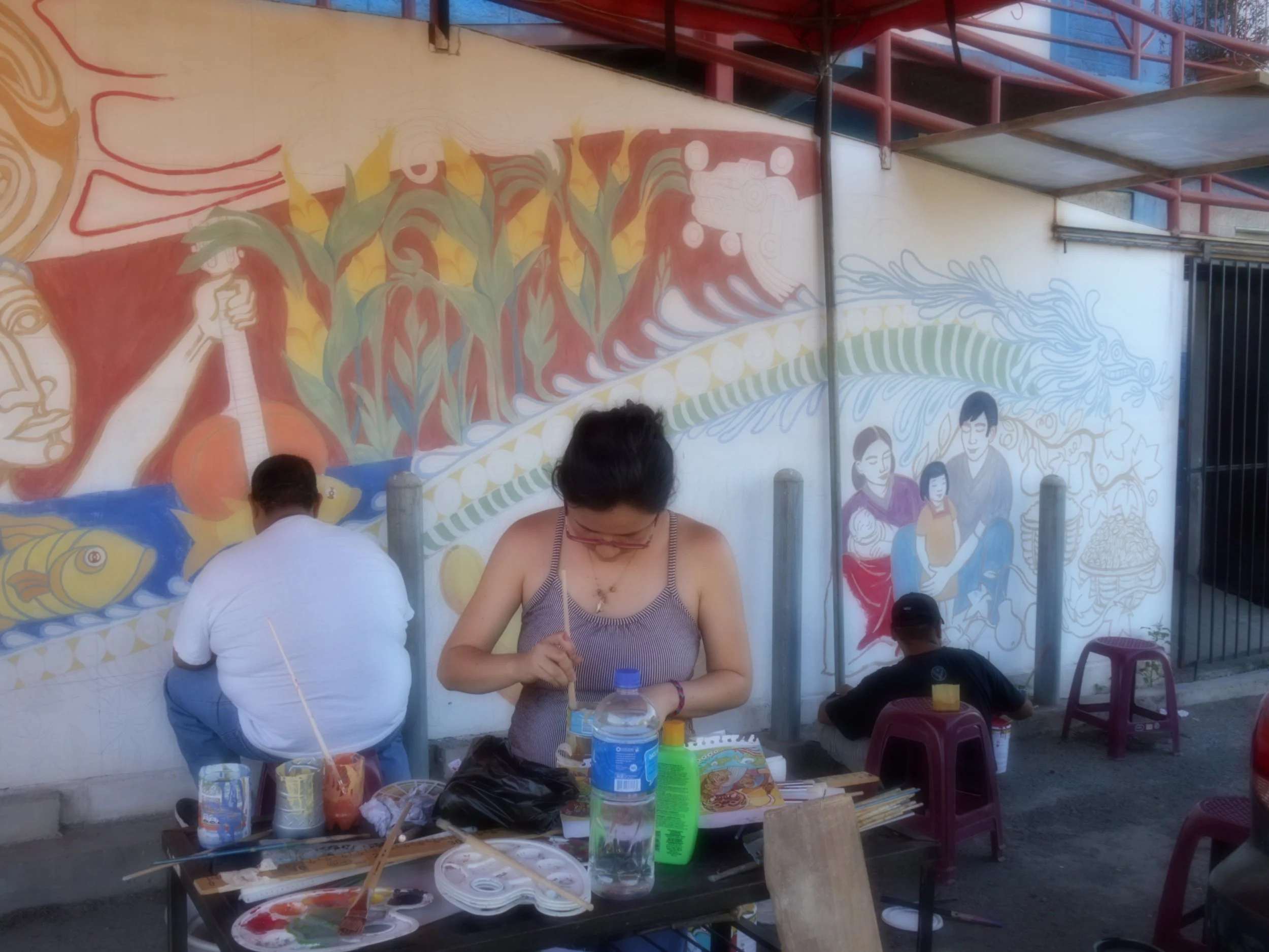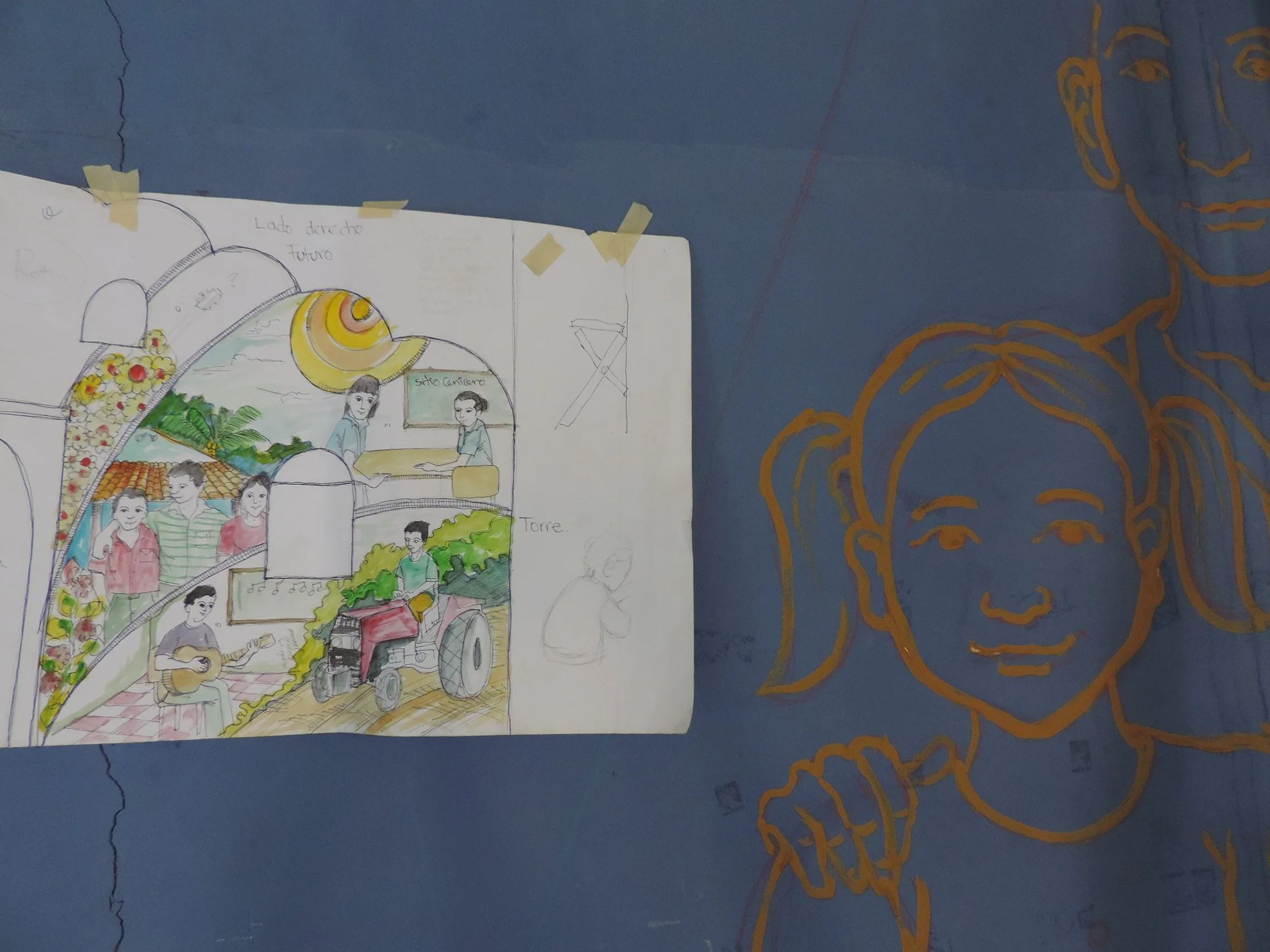Fredy Granillo has created murals over the length of his career, starting with community led historical memory murals in the communities of San Ramon, Octavio Ortiz, Segundo Montes, Berlin, and Suchitoto - all of which survived the armed conflict of the 1980’s in El Salvador. Granillo facilitated a student explore program at Washington College to create “The Garden” mural, and most recently he was commissioned to create “El Trompo” mural in Chestertown Maryland.